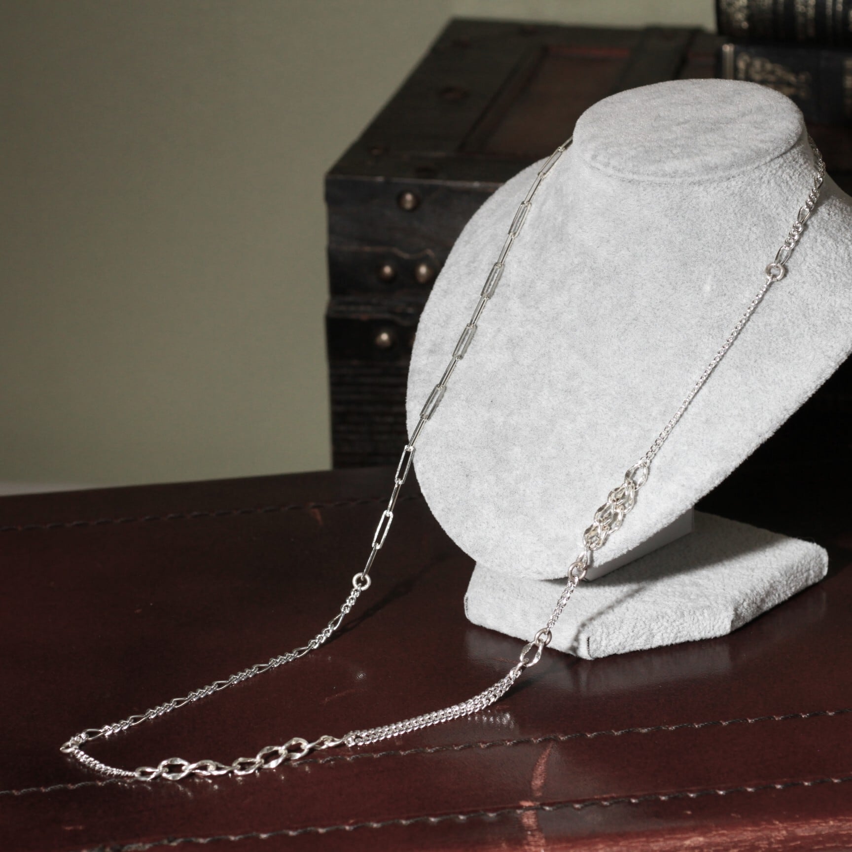 異なるデザインのチェーンがつくる奥行きと輝き。