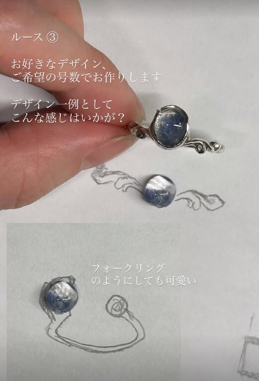 お選びいただいた石をもとに、ご希望のデザイン・サイズでリングをお仕立ていたします。