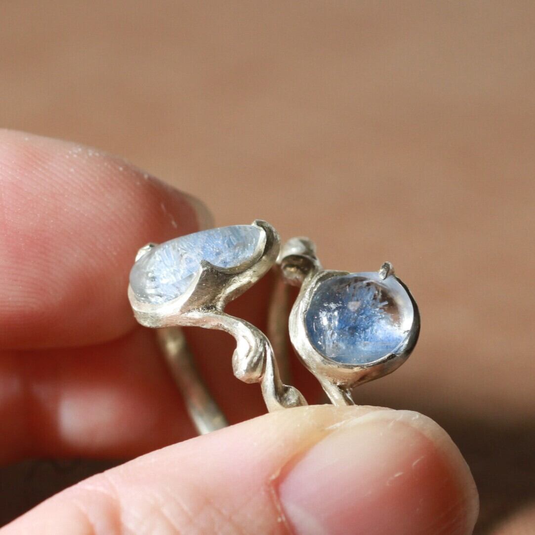 石に光が入るように、覆輪と爪留めを組み合わせ