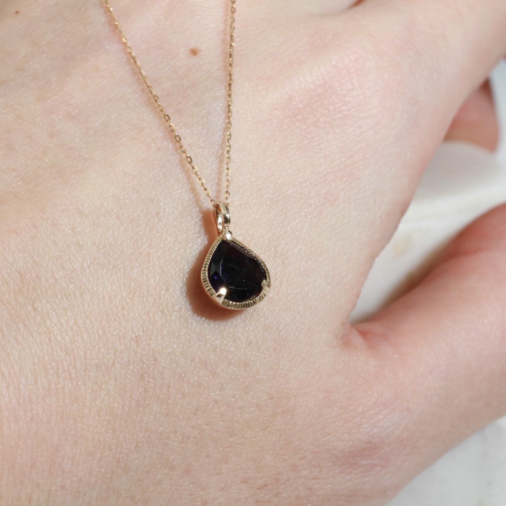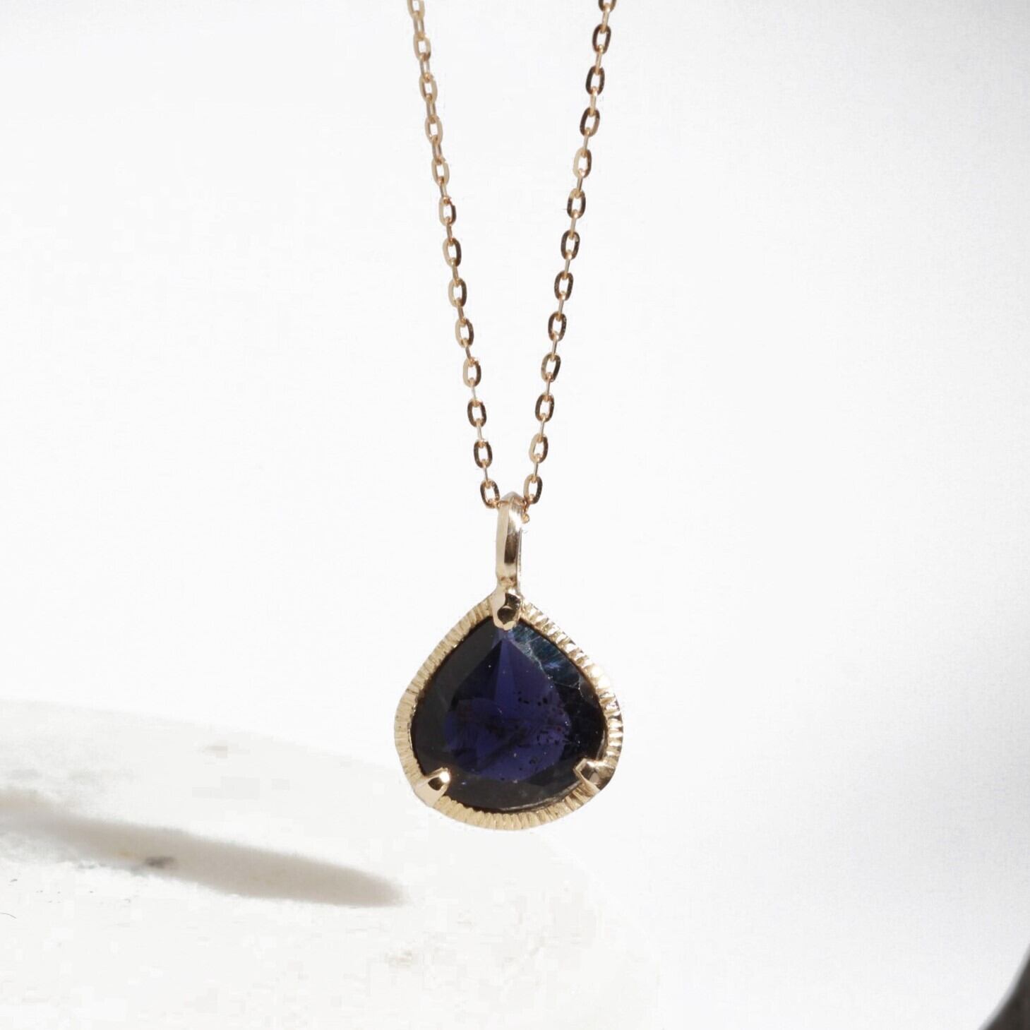 真夜中の空を閉じ込めたような、唯一無二のアイオライトサンストーンを使ったネックレスが誕生しました。