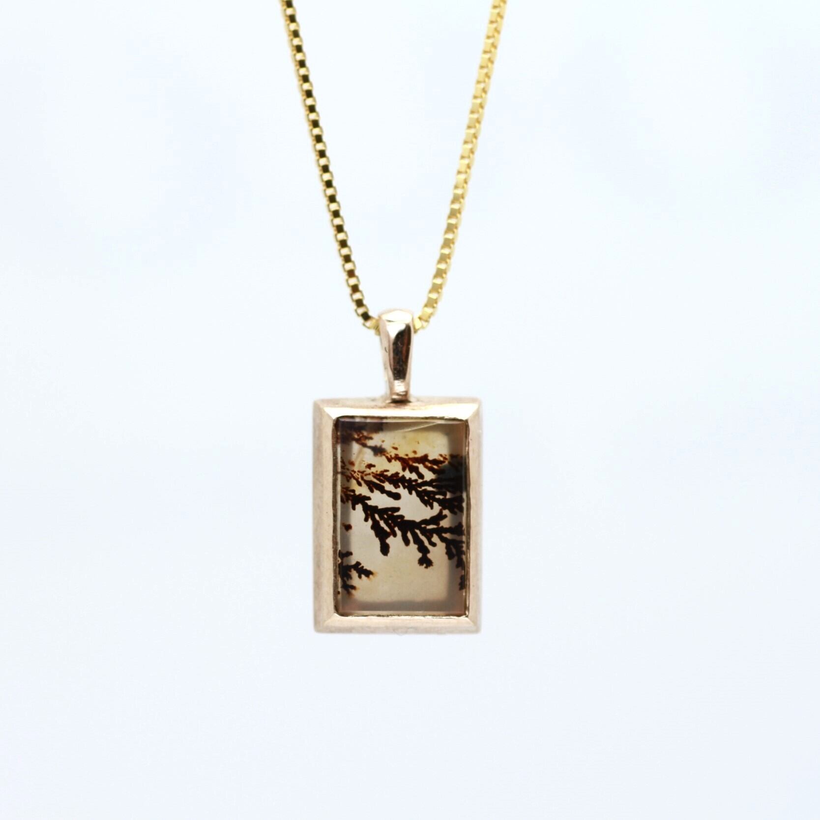 草木の模様が描かれたようなアゲートを、一枚の絵画に見立てたネックレスです。
