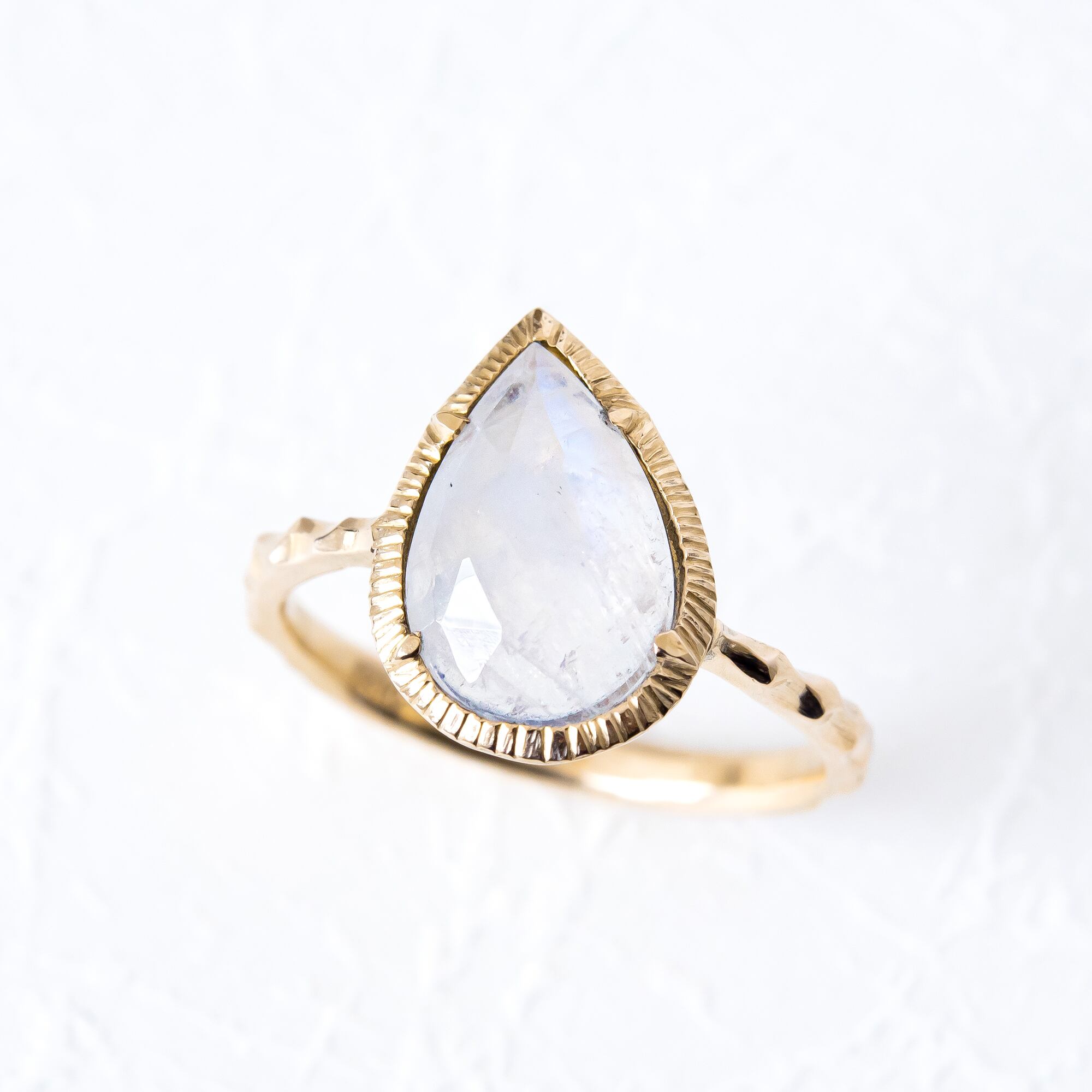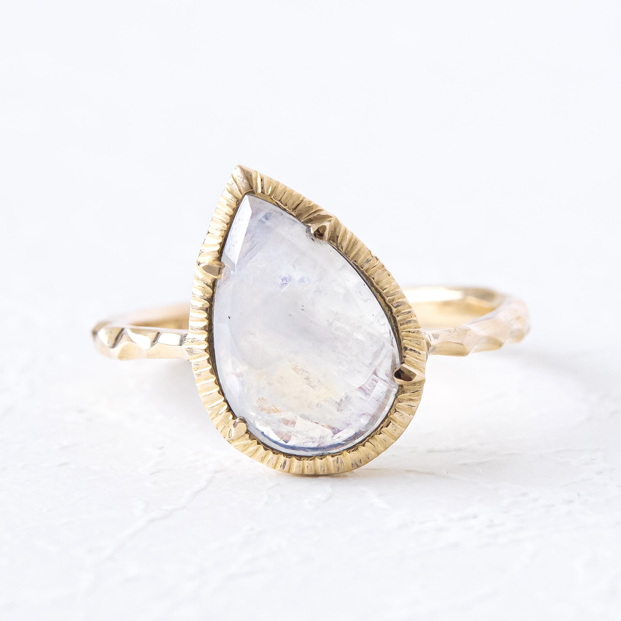 石を覗くとブルーのシラーが浮かぶ、神秘的な指輪です