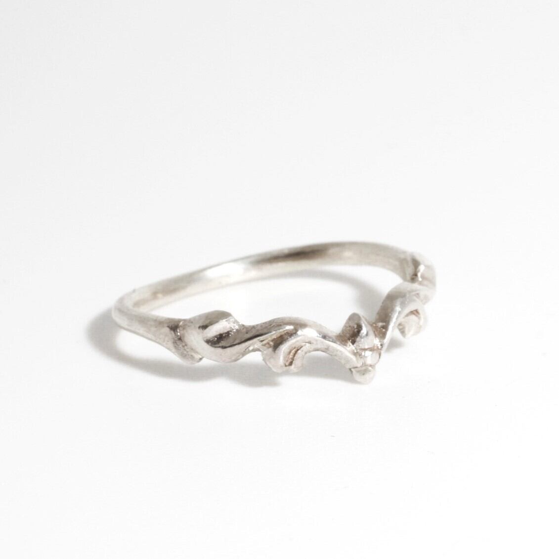 植物の柔らかな曲線美と、クラシカルなヨーロッパ建築の装飾美を指輪として表現。指先を美しく見せる優雅なV字ラインが、シンプルな装いに品格と個性をもたらします。